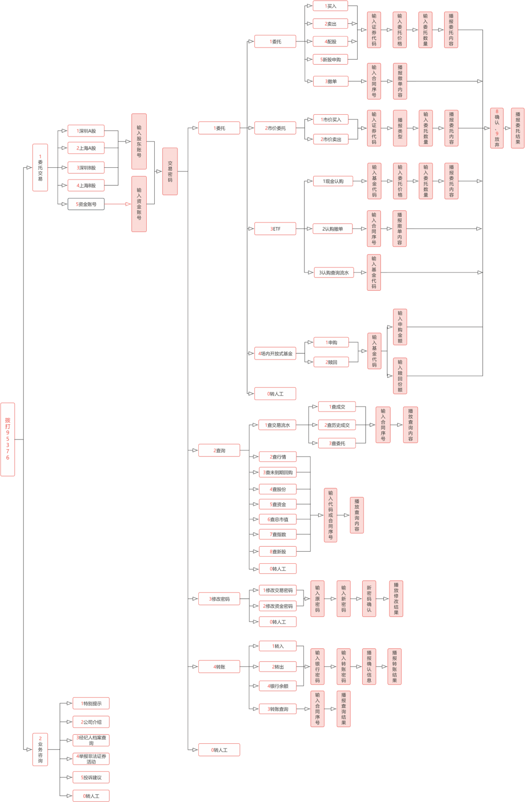 委托交易請按 “1” 業(yè)務(wù)咨詢請按 “2” 如需轉(zhuǎn)接人工服務(wù),請按 “0” 如您有資金賬號,請在資金賬號后加 ”#” 鍵轉(zhuǎn)人工,如您沒有資金賬號,請直接按 ”1#” 轉(zhuǎn)人工 返回請按 ”*” 鍵